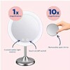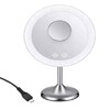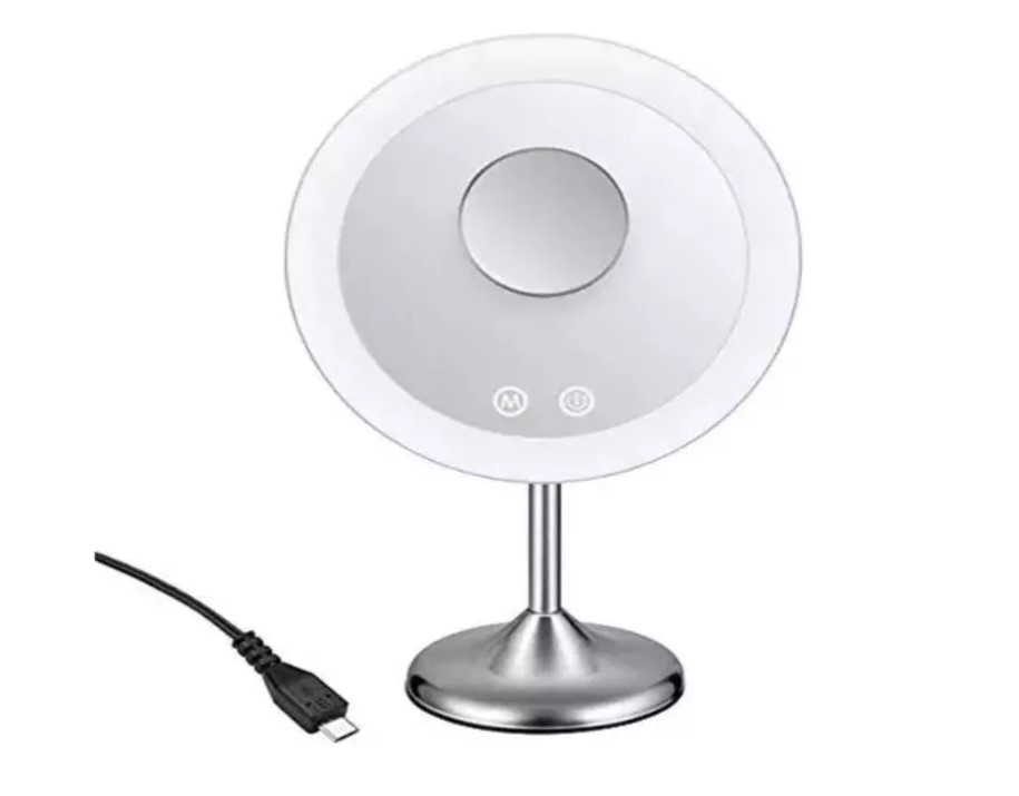 Iluminación LED, 3 Intensidad de Luz ( baja, media y baja), aumento de 1x, control touch, recargable, accesorio espejo 5x, altura ajustable. Gira 90 grados. Batería recargable de litio