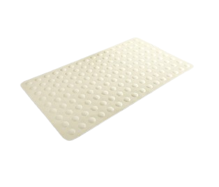 El tapete está fabricado en hule de alta calidad, lo que garantiza durabilidad y resistencia al desgaste. Su color blanco no solo aporta un toque estético, sino que también se adapta a diferentes estilos de decoración.